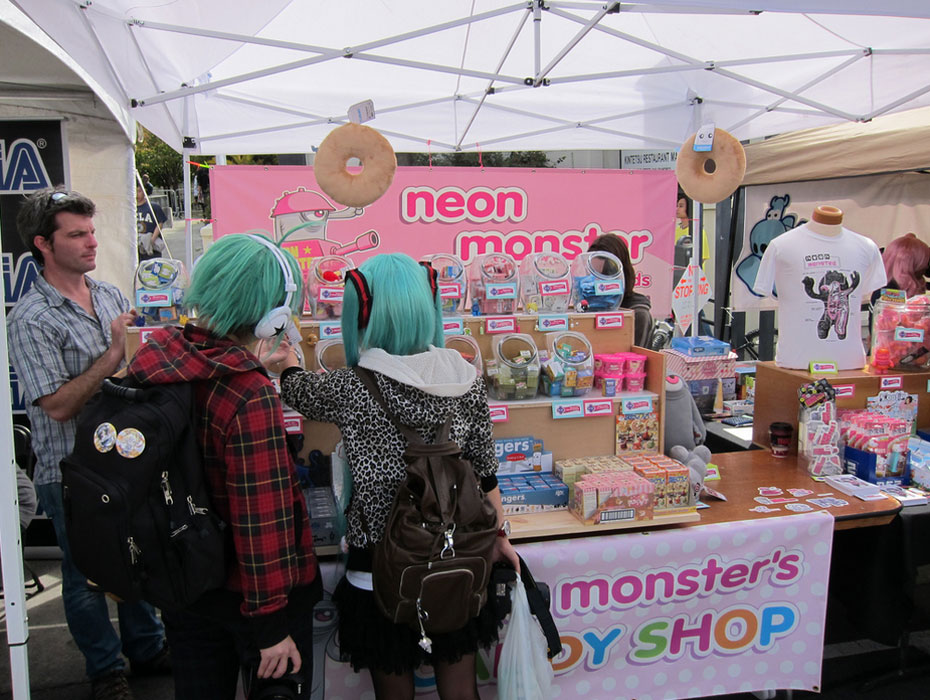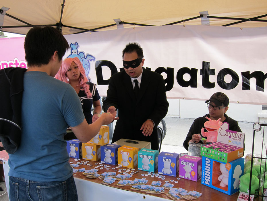 VIZ Media’s NEW PEOPLE invited me to curate a Vinyl Village of the Bay Area’s best toy art purveyors for the 2nd annual J-POP Summit. For one fun day, visitors to San Francisco’s Japantown enjoyed an extra (outdoors) serving of Gothic Lolitas, the latest kawaii from Harajuku and graffiti by Estria. They shopped for toys and art, competed in the Pocky Chow Down and sampled sweets and sushi amid the acoustics of rap, rock and a sake barrel breaking. By incorporating fresh content from Japan—and encouraging the involvement of local San Francisco businesses and artists—the J-POP Summit is a platform for the wonderful wave of hybrid culture in our new world community. In 2014, the J-Pop Summit held its 6th annual festival.
