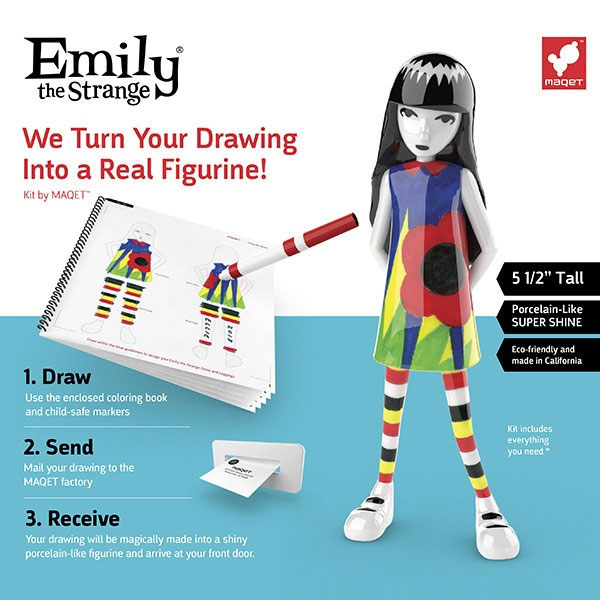MAQET collaborated with artist Frank Kozik to provide a unique prize for GoldRun Games’ first ever Augmented Reality Designer Toy Scavenger Hunt. Curious collectors could join the fun at three different levels: Global Run (collect toys around the world), Citywide Run (collect toys in San Francisco, New York, Chicago and London) and Location-specific Run (collect toys in specific neighborhoods within a particular city). MAQET also collaborated with artist Rob Reger to make a customizable version of his ultra-popular character, Emily the Strange. Fans around the world can now be Emily’s personal fashion designer by using MAQET’s online high-tech software or handy traditional drawing kits.
