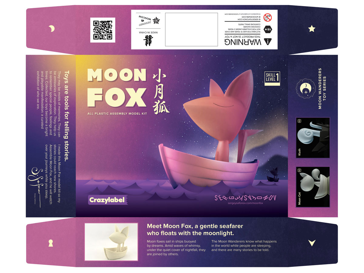 Sergey Safonov is a talented character designer and artist from Moscow, Russia. He has a wonderful visual language which he uses to create worlds and tell stories without words. As he prepared his Moon Fox toy model kit to be released worldwide, he asked me to help translate his images into copy for packaging and promotion. The resulting text is not “marketing speak;” it complements the spirit of the artist and his product. Attention artists: this is one of my favorite requests to get!