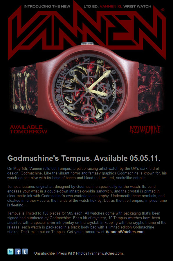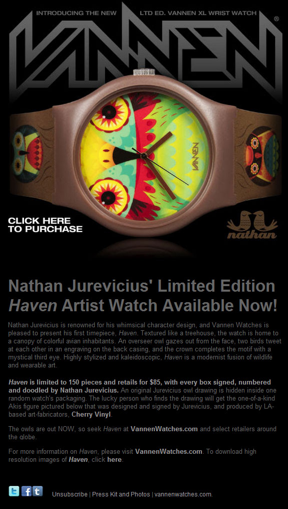 With a skillful eye on the pop culture zeitgeist, Vannen Watches produces collectible, exclusive-but-affordable timepieces for artists, musicians and TV/film properties. Vannen gives the public a new way to wear their art on their sleeve and showcase personal style without breaking the bank. After an early blog post I wrote about the brand, Vannen’s founder contracted me to interview artists, write blog stories and write and edit press releases. I’m honored to play a role in the marketing of Vannen, a growing American brand with a big heart for the arts and its customers.